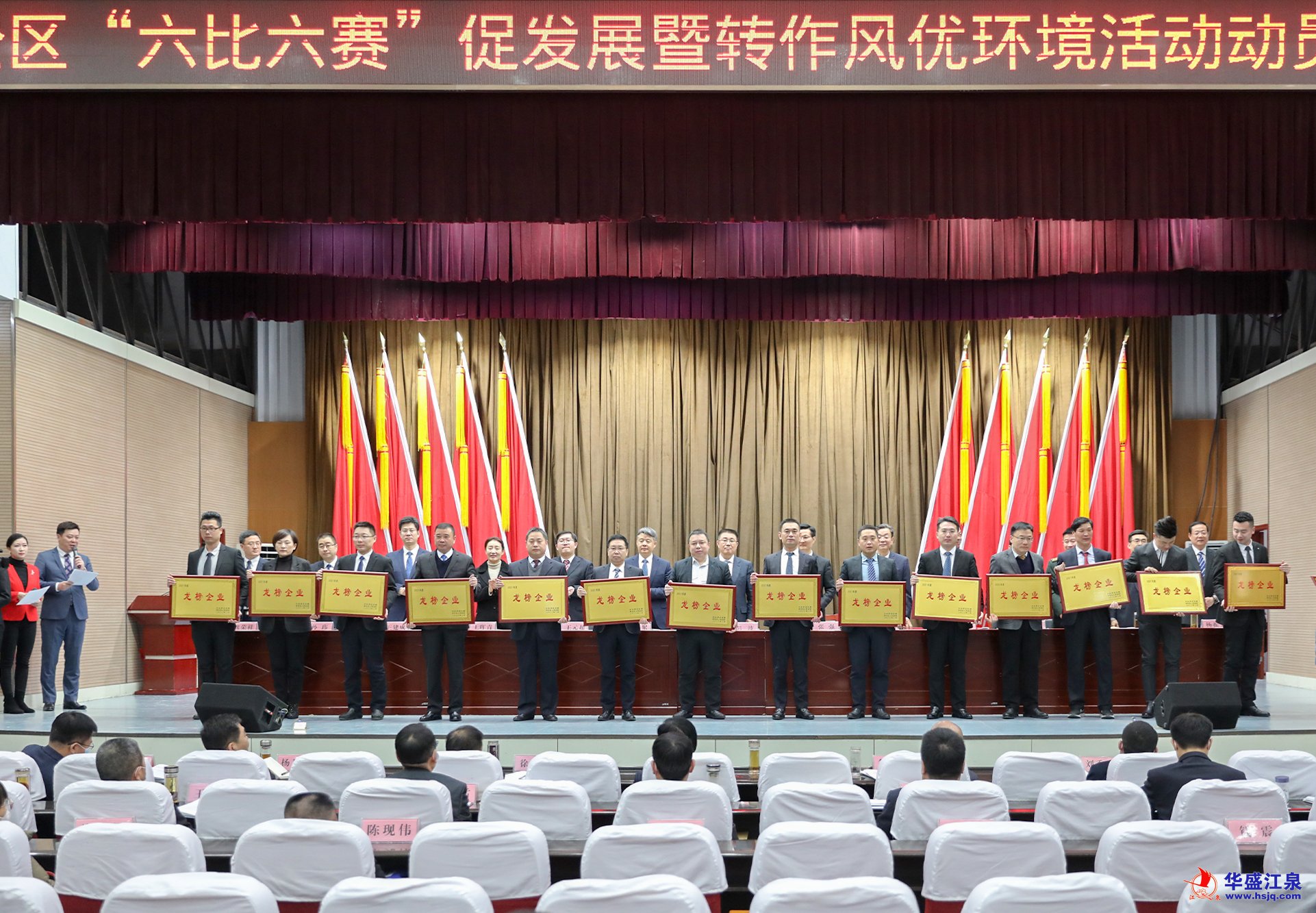 2月10日,羅莊區“六比六賽”促發展暨轉作風優環境活動動員會議召開,動員全區上下牢固樹立“項目為王、企業至上”的理念,一切圍繞企業轉,一切盯著項目干,努力跑出項目建設“加速度”,打造營商環境“金招牌”,展現作風建設“新氣象”,推動全區經濟社會高質量發展。為表揚先進、樹立典型,羅莊區委、區政府對2021年度具有特殊貢獻的先進企業進行了表彰。在此次受表彰的全區15家“2021年度龍榜企業”中,華盛江泉集團榮登榜首。沈泉莊黨委書記、華盛江泉集團常務副總經理、財務總監張毅參加動員會議并上臺領獎。