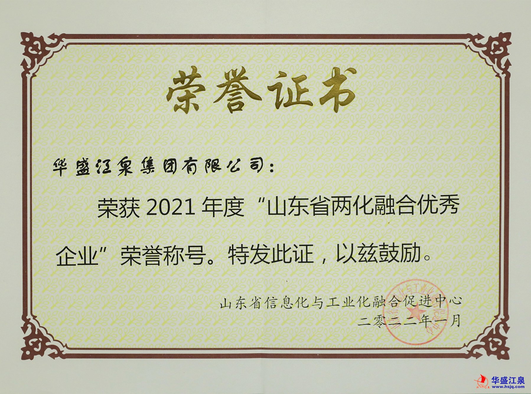 近日,經山東省兩化融合相關部門及專家團共同審核評定,華盛江泉集團獲得“2021年度山東省兩化融合優秀企業”榮譽稱號,這是繼2018年后集團再度獲評省級兩化融合優秀企業稱號。